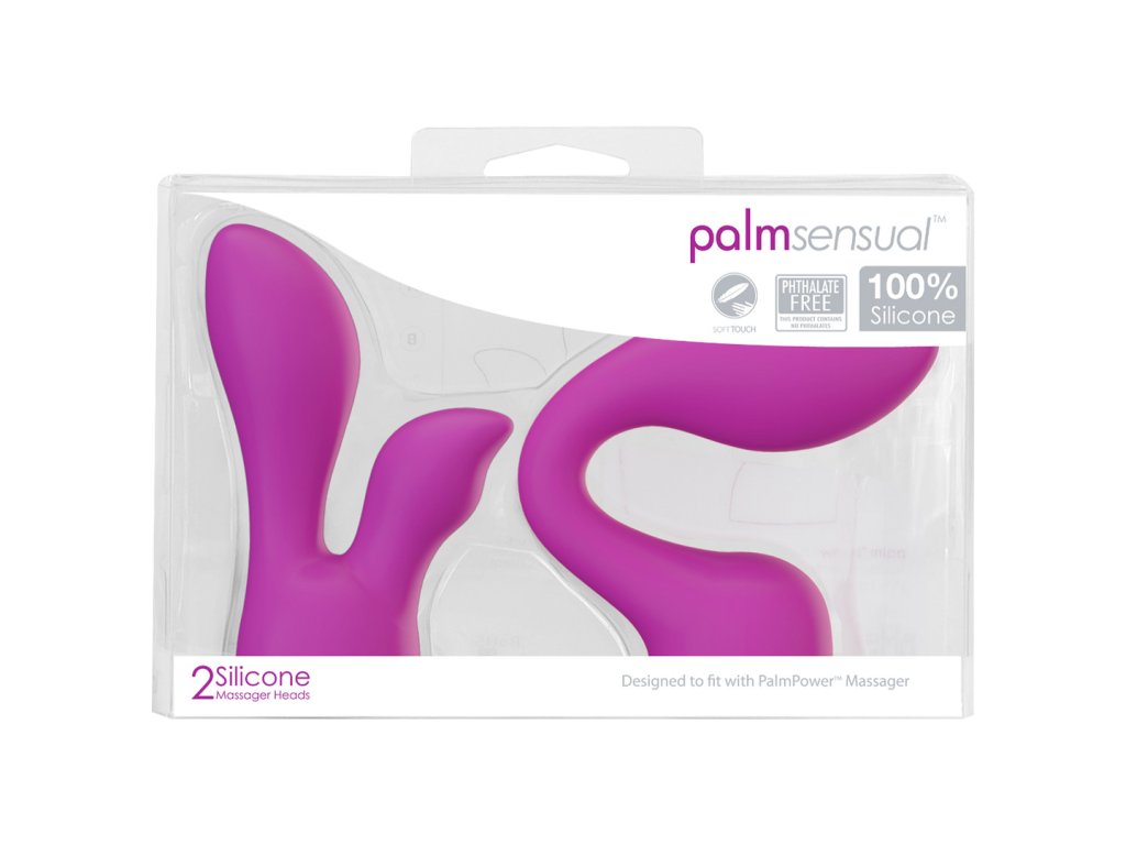 Balení 2 silikonových nástavců Palm Below a Palm Dual určené na masážní hlavici Palmpower. Nástavce stačí na hlavici našroubovat a můžete používat.