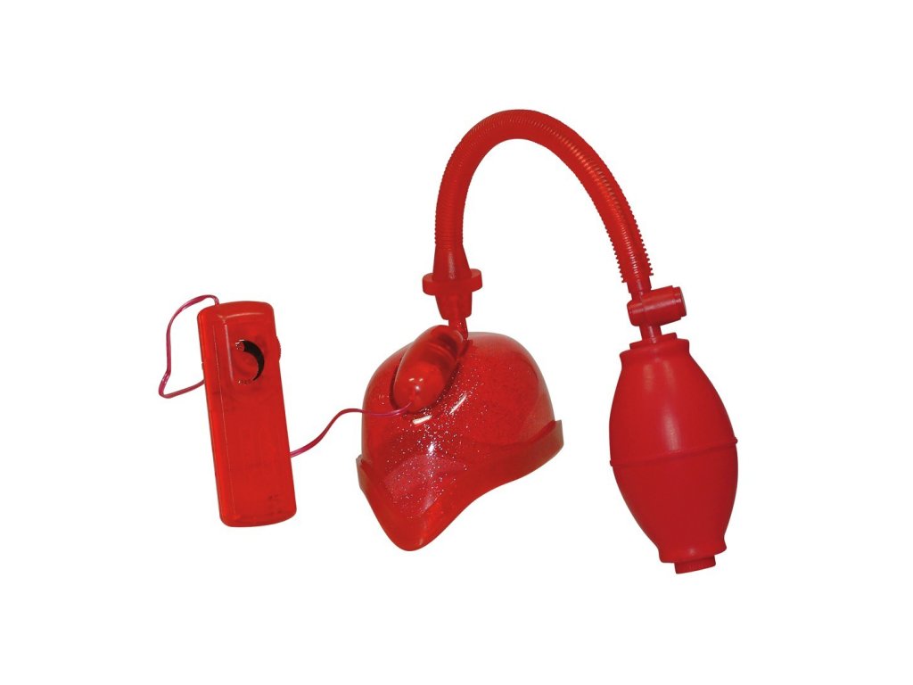 Dámská vakuová pumpa v červeném provedení. Tato pumpa má zavedené vibrační vajíčko, které lze ovládat dálkovým ovladačem. Sací mistička je z kvalitního pevného PVC materiálu. Podtlak v pumpě lze regulovat pomocí balónku a ventilku. Pumpa Vám prokrví vagínku a její okolí a tím budou Vaše intimní prožitky větší a intenzivnější.
