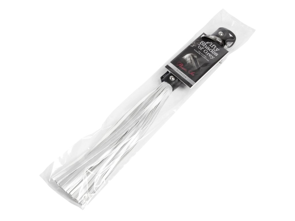 Fifty Shades of Grey - bič Please Sir s třásněmi se semišovou úpravou v černo- stříbrném provedení.