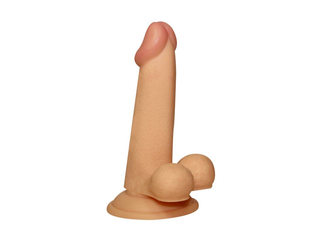 Imitace reálného pánského přirození je vybavena přísavkou pro připevnění k hladké podložce.