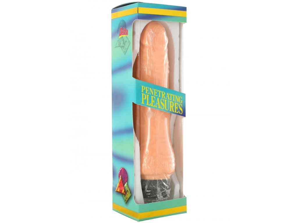 Mezi zákazníky oblíbený vibrátor Kunst v realistickém provedení s žaludem a jemným žilkováním, který je vyroben z příjemně měkčeného PVC. Vibrátor je mírně prohnutý a díky jemně zakulacené špičce se dobře zavádí. Vibrátor lze použít análně i vaginálně. Vibrace se ovládají pomocí otočného kolečka ve spodní části vibrátoru. Plynule se regulují od nejjemnějších až po ty nejsilnější. Pohon motorku zajišťují dvě baterie typu AA, které se vkládají právě pod otočné kolečko. Vibrátor není voděodolný. K dokonalému požitku používejte lubrikačními gely.